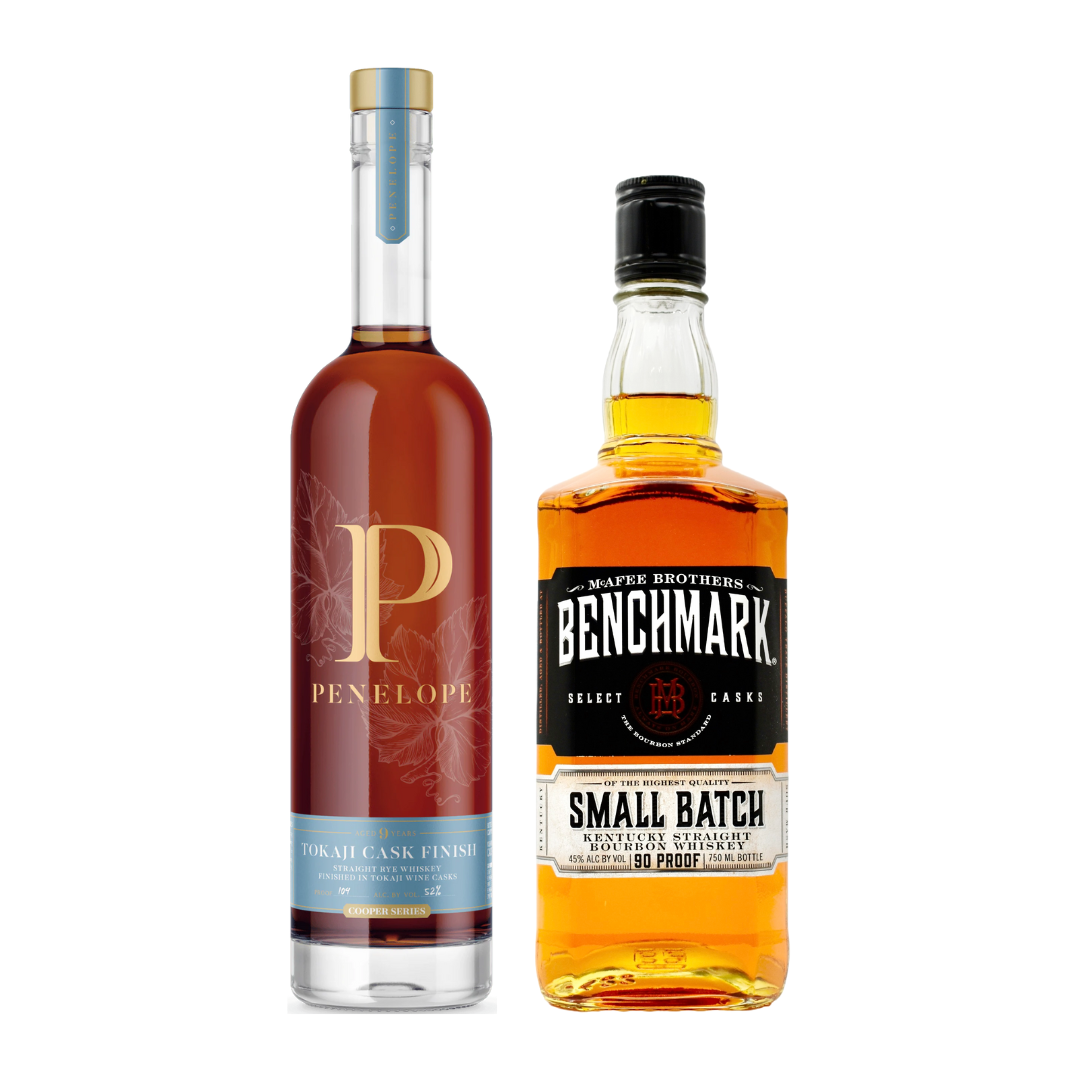 Discover the exceptional pairing of Penelope Bourbon and Tokaji wine in this exclusive combo. This curated set brings together the smooth, four-grain complexity of Penelope Bourbon with the luscious sweetness of Hungarian Tokaji, one of the world's most celebrated dessert wines.