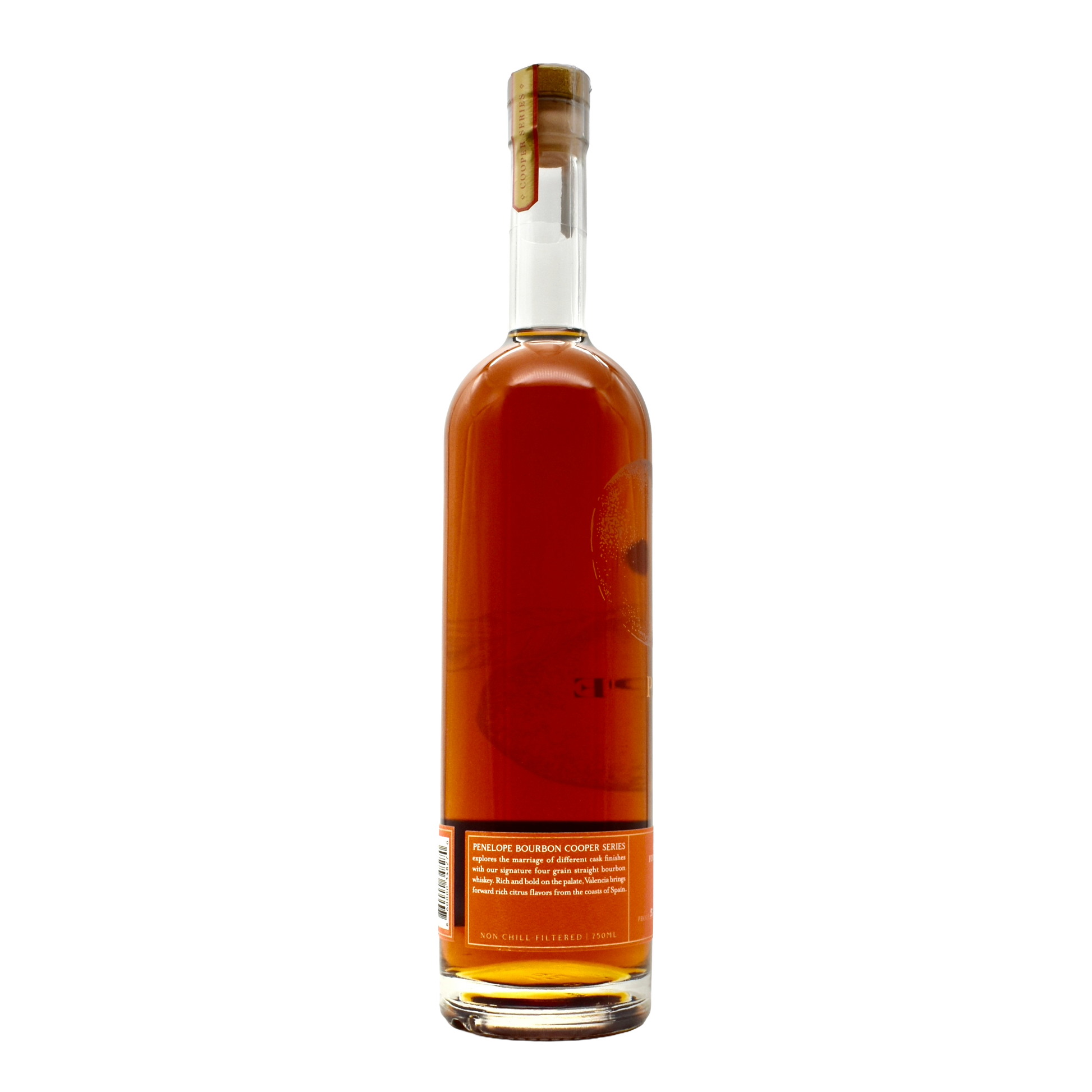 Penelope Valencia Bourbon is a unique, citrus-forward expression from Penelope Bourbon that showcases the innovative spirit of modern American whiskey. This 750ml bottle features bourbon finished in Valencia orange wine casks, creating a distinctive flavor profile that balances classic bourbon character with bright citrus notes and subtle wine influence.